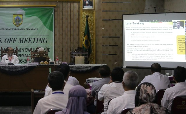 Sementara itu, Kepala Bappeda Kabupaten Pemalang Sujarwo melaporkan bahwa kegiatan Kick off Meeting Penyusunan Dokumen Evaluasi RPJPD tahun 2005-2025 yang dilaksanakan di Gedung Sasana Bhakti Praja Pemalang tersebut bertujuan sebagai forum untuk sosialisasi adanya penyusunan dokumen evaluasi RPJPD Kabupaten Pemalang tahun 2005-2025 serta mendapatkan masukan, usulan dan saran untuk kelengkapan perbaikan dan penyempurnaan evaluasi RPJPD Kabupaten Pemalang tahun 2005-2025.