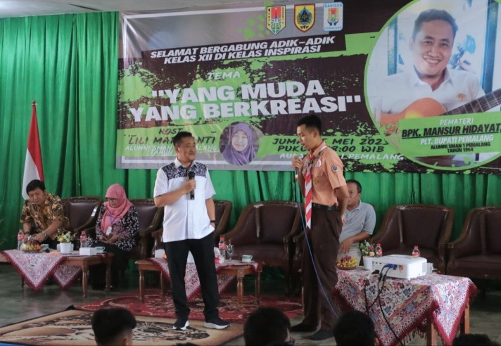 Ungkapan tersebut disampaikan Plt Bupati Pemalang Mansur Hidayat usai menghadiri acara Kelas Inspirasi yang digelar oleh Keluarga Alumni SMAN Satu Pemalang (GANISSA Pemalang) di Aula SMA tersebut. Jum’at (5/4/2023)
