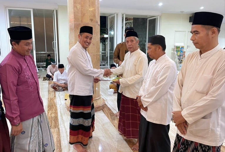 Kegiatan tarawih dan silaturahim (tarhim) dilanjutkan dengan pemberian bantuan kepada takmir dan marbot Masjid Agung Nurul Kalam.