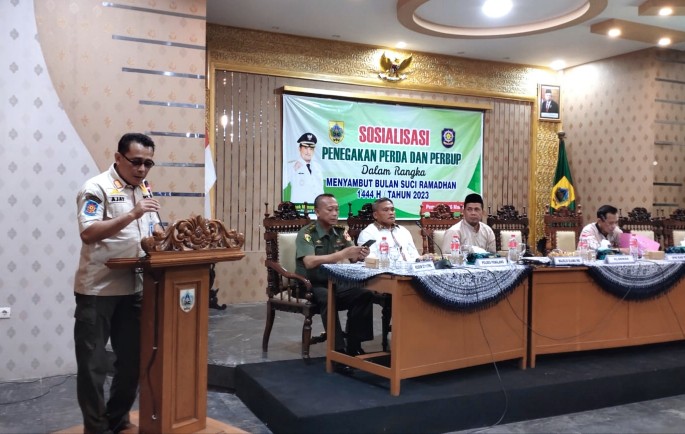 Penandatangan kesepakatan tersebut merupakan bagian dari acara kegiatan sosialiasi penegakan peraturan daerah dan peraturan bupati dalam rangka menyambut Ramadan 1444 H/2023. Kegiatan dilaksanakan di Gedung Sasana Bhakti Praja, Kamis (16/3/2023).
