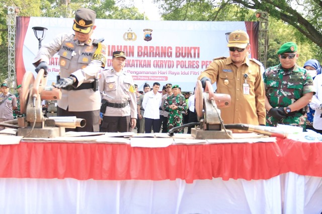 Pemusnahan barang sitaan itu dilakukan Plt Bupati Pemalang Mansur Hidayat dan jajaran Forkopimda bertempat Di Alun Alun setempat, Senin (17/4/2023).